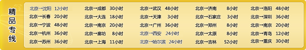 運價平:享受鐵道部門的優惠政策,價 格優,部分城市包車,價格更平于空 運一半